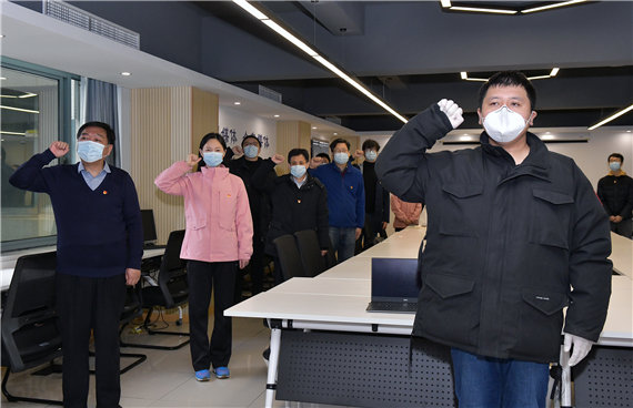 百里之遙,阻隔不了入黨宣誓的堅定決心;口罩遮面,卻擋不住誓言的鏗鏘有力。2月14日,一場特別的入黨宣誓儀式在新華社湖北分社舉行。