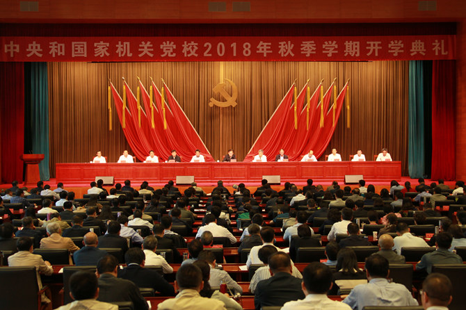 這是黨和國家機構改革中新組建的中央和國家機關黨校第一次開學典禮。中央黨校(國家行政學院)副校(院)長謝春濤、教務部主任王成志,中組部干部教育局副巡視員張國發,中央和國家機關工委有關部門負責同志出席。2018年秋季學期司局級、處級干部進修班、青年干部培訓班學員及中央和國家機關黨校干部職工約400人參加開學典禮。