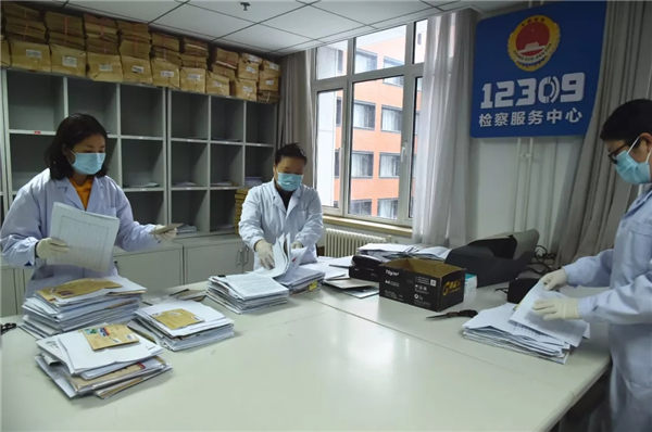 2月3日、4日是節(jié)后辦公的頭兩個工作日,也是集中處理群眾來信室節(jié)后最繁忙的日子。為數(shù)不多的工作人員兩天分別拆分了1400余封和1100余封信件。然而相比拆檢、分流大量的信件,更難的則是對信件的回復辦理工作。在人員緊張的情況下,為了確保群眾來信7日內程序性回復,十廳全體同志都埋頭于一摞摞厚厚的信件中,每人每天回復幾十件,甚至上百件。2月3日辦公以來,最高檢接收群眾來信2566件,通過12309中國檢察網接收群眾網上信訪2094件,對于已辦理的群眾來信和網絡信訪,做到了應回盡回,7日內程序性回復率100%。另外,12309檢察服務熱線還接聽群眾來電98件次,處理電話留言213件次。