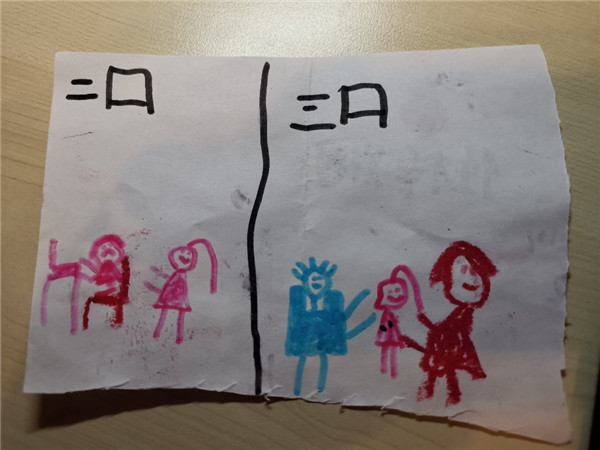 他們6歲的女兒平時最喜歡畫畫,有一天女兒遞給她一幅畫,說畫的是他們一家,看完她瞬間落淚:左邊是媽媽在家里電腦前辦公,孩子在身后默默的看著;右邊是爸爸下班后來看望她們娘兒倆。這幅畫的背后還有個小故事,她愛人擔心自己每天的工作容易接觸到病毒,說自己沒什么,就是擔心家里體弱的老人和孩子,于是建議她和老人孩子一起住,自己單獨隔離,于是就有了畫中右邊的內容。雖然看起來簡簡單單一幅畫,卻畫出了爸爸媽媽在孩子心目中的樣子。