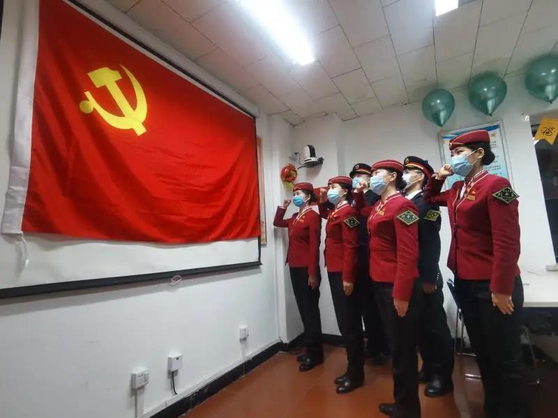 疫情期間,中國(guó)鐵路北京局集團(tuán)公司黨委日均成立135個(gè)臨時(shí)列車乘務(wù)黨支部,積極開展搶運(yùn)物資、護(hù)送醫(yī)學(xué)專家、服務(wù)重點(diǎn)發(fā)熱旅客、列車消毒等重點(diǎn)工作,讓黨旗高高飄揚(yáng)在飛馳的列車上。