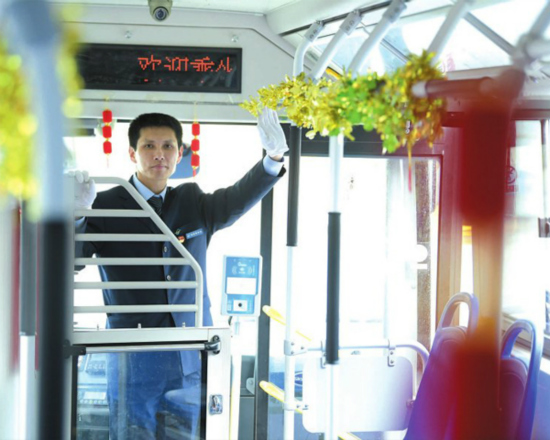 “能為抗擊疫情作貢獻,我很自豪。”為確保醫護人員的安全健康,每次從陽新路公交場站出車前,李旺富都要對車輛進行認真檢查,還會對車廂地面和座位進行消毒。