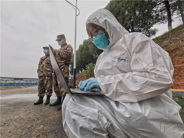 新華社湖北分社記者廖君在火神山醫院采訪