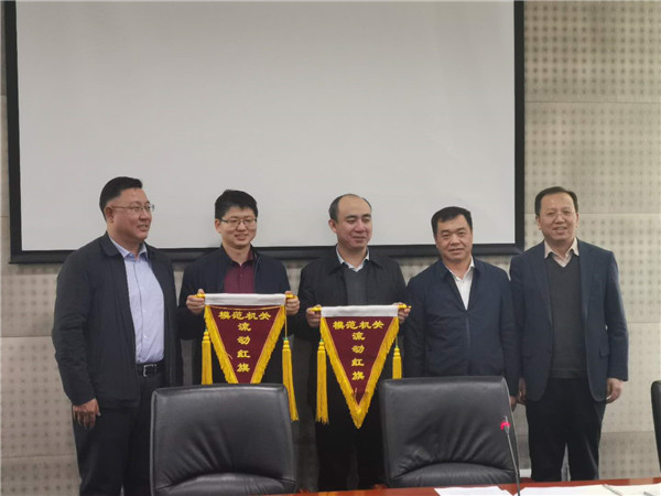 公路局黨支部為“模范機關流動紅旗”突擊隊授旗、“模范機關示范崗”授牌