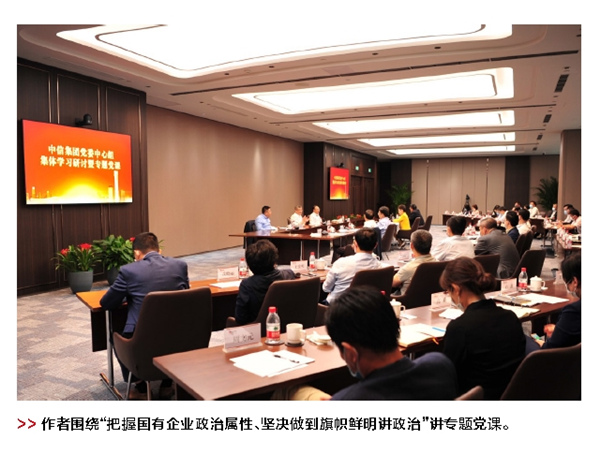 中信集團作為黨領導下的國有企業,堅持黨的領導、把好政治方向是擺在首位的重大政治原則,必須在跟進學好黨的創新理論中舉旗鑄魂。集團黨委注重以學為先,盯著理論熱點、戰略重點和形勢焦點學深學透、把握精髓。