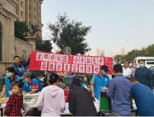 北京市直機關黨員干部參與社區“小手拉大手”垃圾分類宣傳活動。