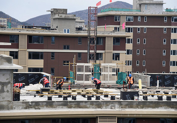 >> 2020年3月26日,建設者在位于北京市海淀區西北旺鎮的共有產權住房 —— 永靚家園項目施工現場作業。