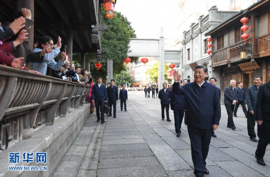 3月22日至25日,中共中央總書記、國家主席、中央軍委主席習(xí)近平在福建考察。這是24日下午,習(xí)近平在福州三坊七巷歷史文化街區(qū)考察時,向游客和市民招手致意。 新華社記者 燕雁 攝