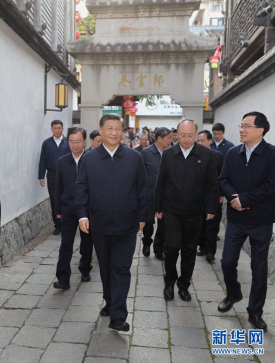 3月22日至25日,中共中央總書記、國家主席、中央軍委主席習(xí)近平在福建考察。這是24日下午,習(xí)近平在福州三坊七巷歷史文化街區(qū)步行察看郎官巷。 新華社記者 王曄 攝