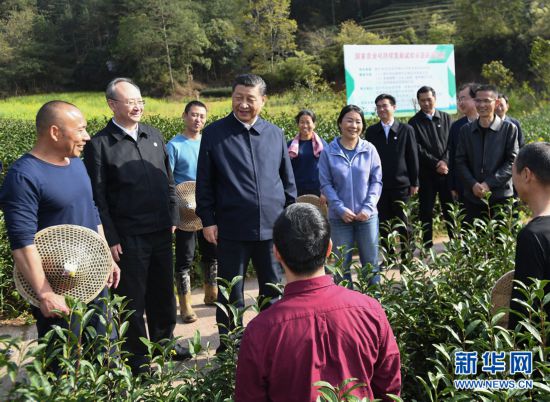 3月22日至25日,中共中央總書記、國家主席、中央軍委主席習(xí)近平在福建考察。這是22日下午,習(xí)近平在南平武夷山市星村鎮(zhèn)燕子窠生態(tài)茶園,同科技特派員、茶農(nóng)親切交流,了解當?shù)夭璁a(chǎn)業(yè)發(fā)展情況。 新華社記者 燕雁 攝