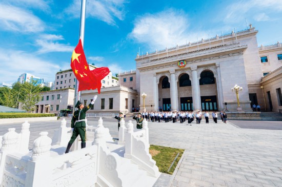 維護(hù)黨的團(tuán)結(jié)和集中統(tǒng)一,不能停留在口頭上,而是要體現(xiàn)在行動(dòng)上。全國政協(xié)機(jī)關(guān)是服務(wù)專門協(xié)商機(jī)構(gòu)建設(shè)的搭臺(tái)者,始終注重把維護(hù)黨的團(tuán)結(jié)和集中統(tǒng)一,體現(xiàn)到增強(qiáng)“四個(gè)意識(shí)”、堅(jiān)定“四個(gè)自信”、做到“兩個(gè)維護(hù)”上,體現(xiàn)到堅(jiān)決貫徹落實(shí)習(xí)近平總書記重要講話、重要指示批示精神和黨中央決策部署的具體行動(dòng)上,為專門協(xié)商機(jī)構(gòu)發(fā)揮在國家治理體系中的重要作用更好服務(wù)。圖為2020年7月1日,全國政協(xié)機(jī)關(guān)在中共八大會(huì)址(全國政協(xié)禮堂)前舉行升國旗儀式。 人民政協(xié)網(wǎng)記者 賈寧/攝