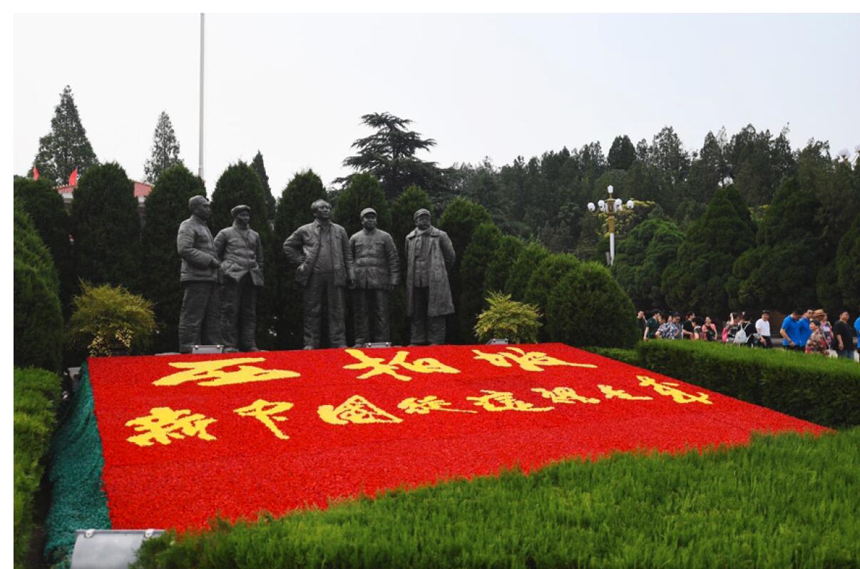 >> 游客參觀河北西柏坡紀念館廣場。
