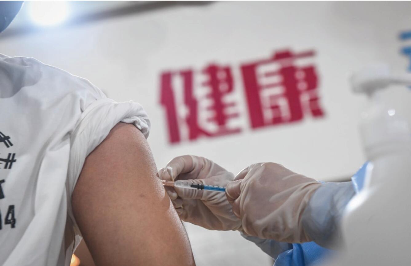 >> 5月7日,市民在沈陽市大東區新冠疫苗接種方艙一樓接種區接種疫苗。