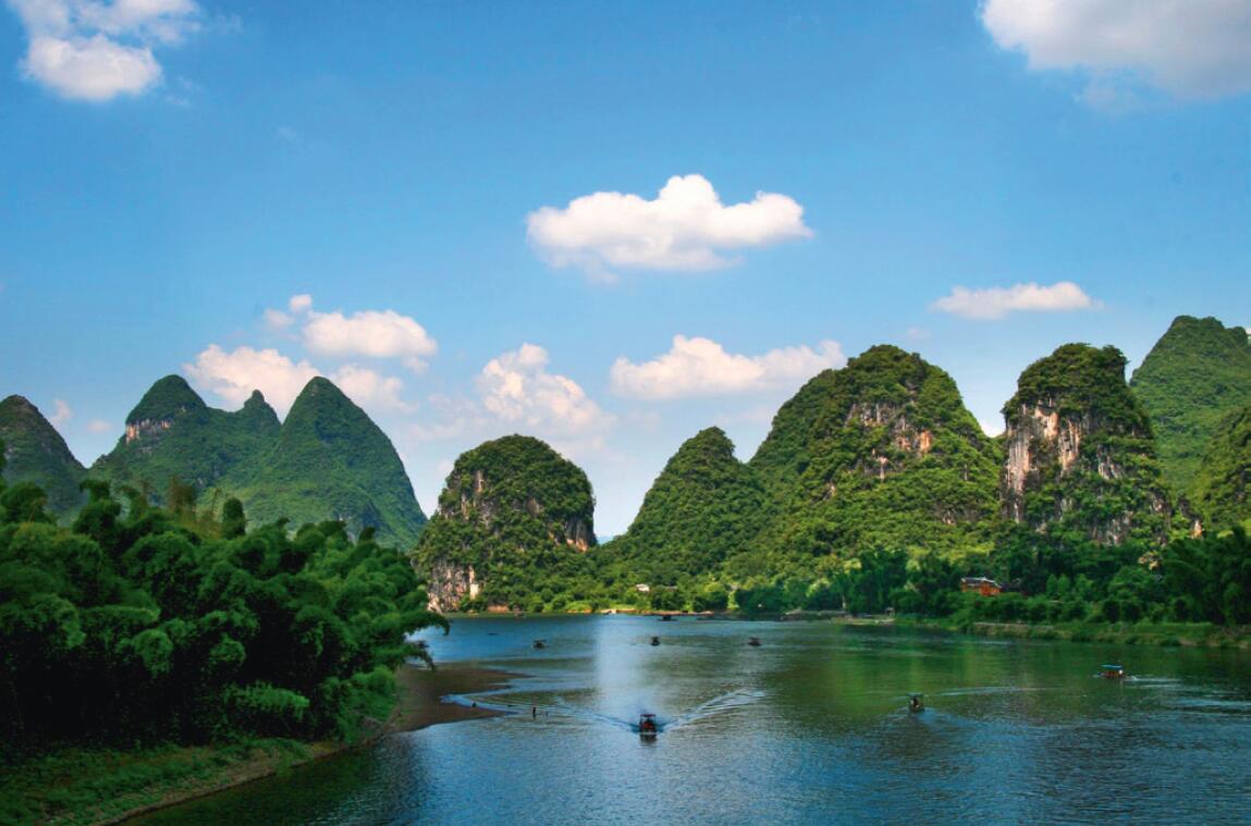 >> 廣西桂林市漓江景色。