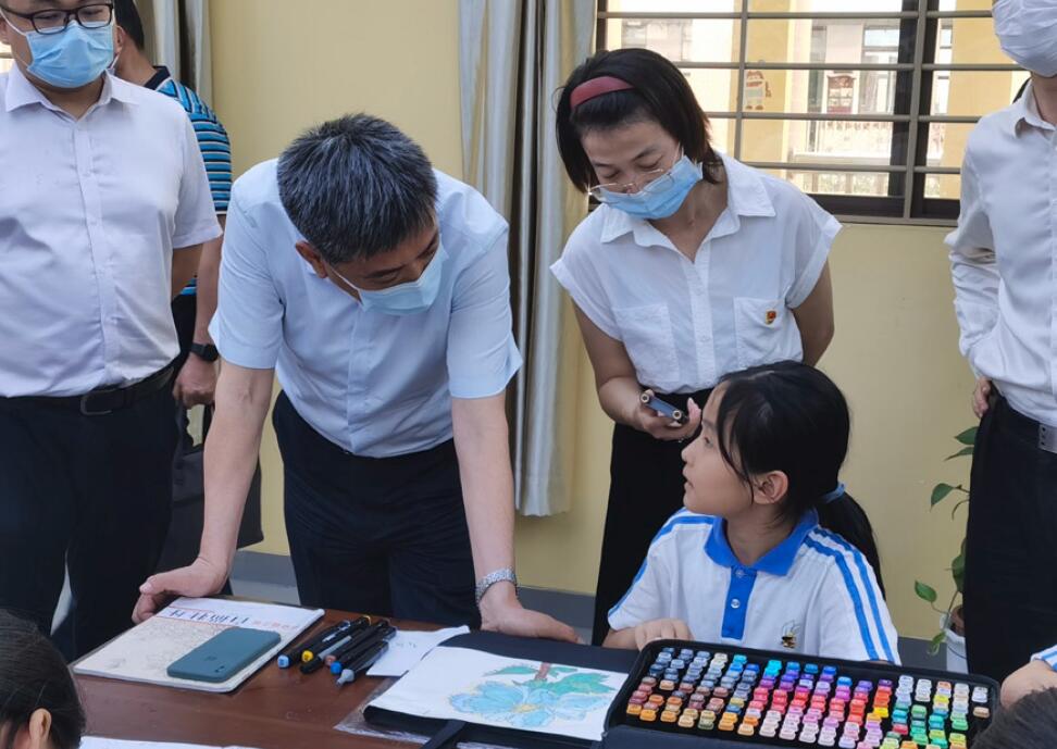 >> 5月26日,基礎(chǔ)教育司司長(zhǎng)呂玉剛(左二)在深圳市龍華區(qū)玉龍學(xué)校調(diào)研課后服務(wù)工作。