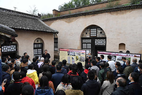 10月12日上午,新華社“兩優兩先”黨員干部培訓班學員來到山西武鄉縣蟠龍鎮安樂莊村,尋訪新華社華北總分社和《新華日報》(華北版)舊址。劉軍喜攝