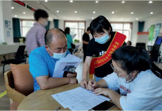 >> 內蒙古自治區興安盟學生資助管理中心大學生志愿者指導學生及家長辦理國家助學貸款。