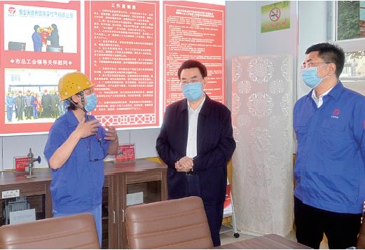 >> 9月16日,中國兵器裝備集團有限公司黨組書記、董事長許憲平 (中) 在戚紅勞模創新工作室調研。