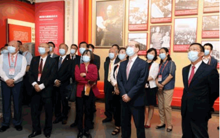 >> 作者 (前排右二) 帶領出席“攜手圓夢—兩岸同胞研討交流活動”的臺胞參觀中共