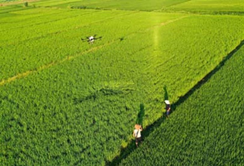 稻進(jìn)行飛防作業(yè) (無(wú)人機(jī)照片) 。
