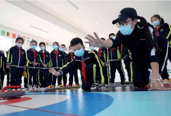 >> 2021年10月22日,河北省東光縣第三實驗小學學生在特色體育課上體驗陸地冰壺項目。