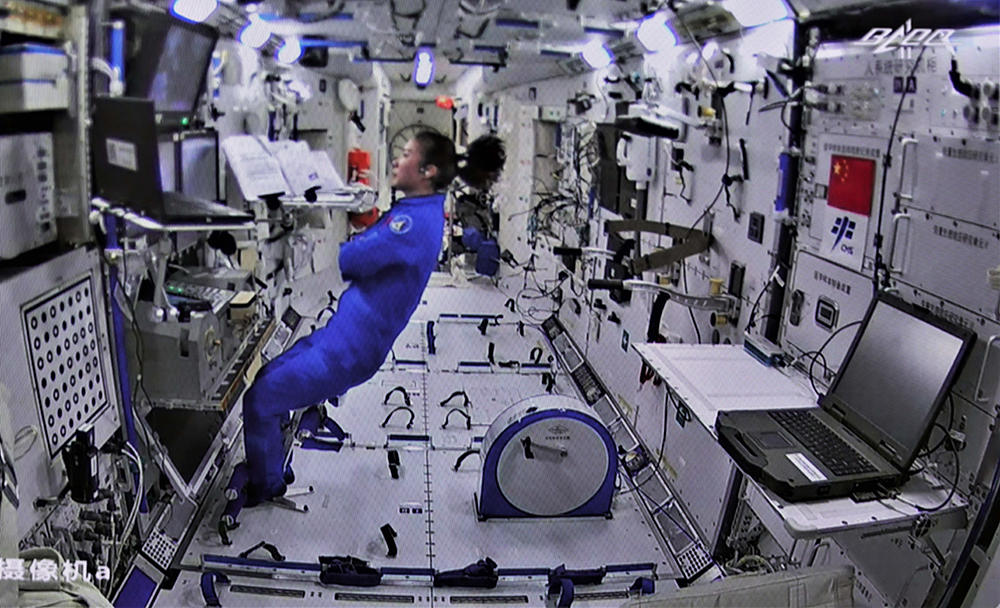 2021年12月26日,在北京航天飛行控制中心拍攝的神舟十三號航天員王亞平在核心艙內工作場景。 新華社記者郭中正/攝