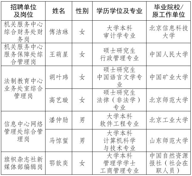 根據事業單位公開招聘工作有關規定,現將我單位2022年度公開招聘擬聘用人員予以公示。公示期間,如有問題,請向中央和國家機關工委組織部反映,或者直接通過中央和國家機關所屬事業單位公開招聘服務平臺反映。