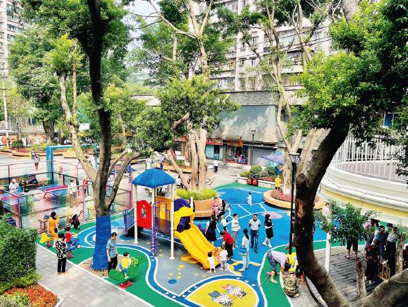 重慶市九龍坡區紅育坡片區改造后的休閑活動場地,3000平方米的空地植入多種功能。