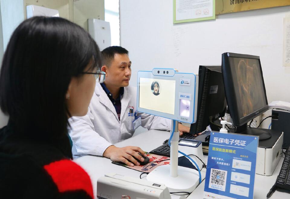 2020年1月14日,濟南市民在市中心醫院使用醫保電子憑證就醫,患者在醫生診室即可利用醫保綜合服務終端,通過人臉識別實現掛號、就醫、結算,方便了人民群眾、 確保了基金安全。