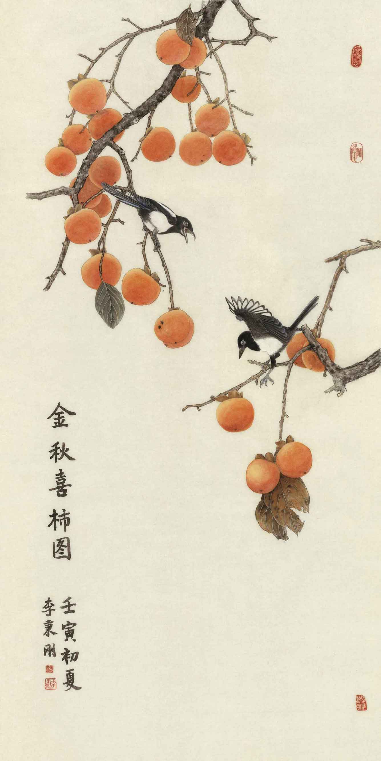 《金秋喜柿圖》(中國畫) 李秉剛(外交部)