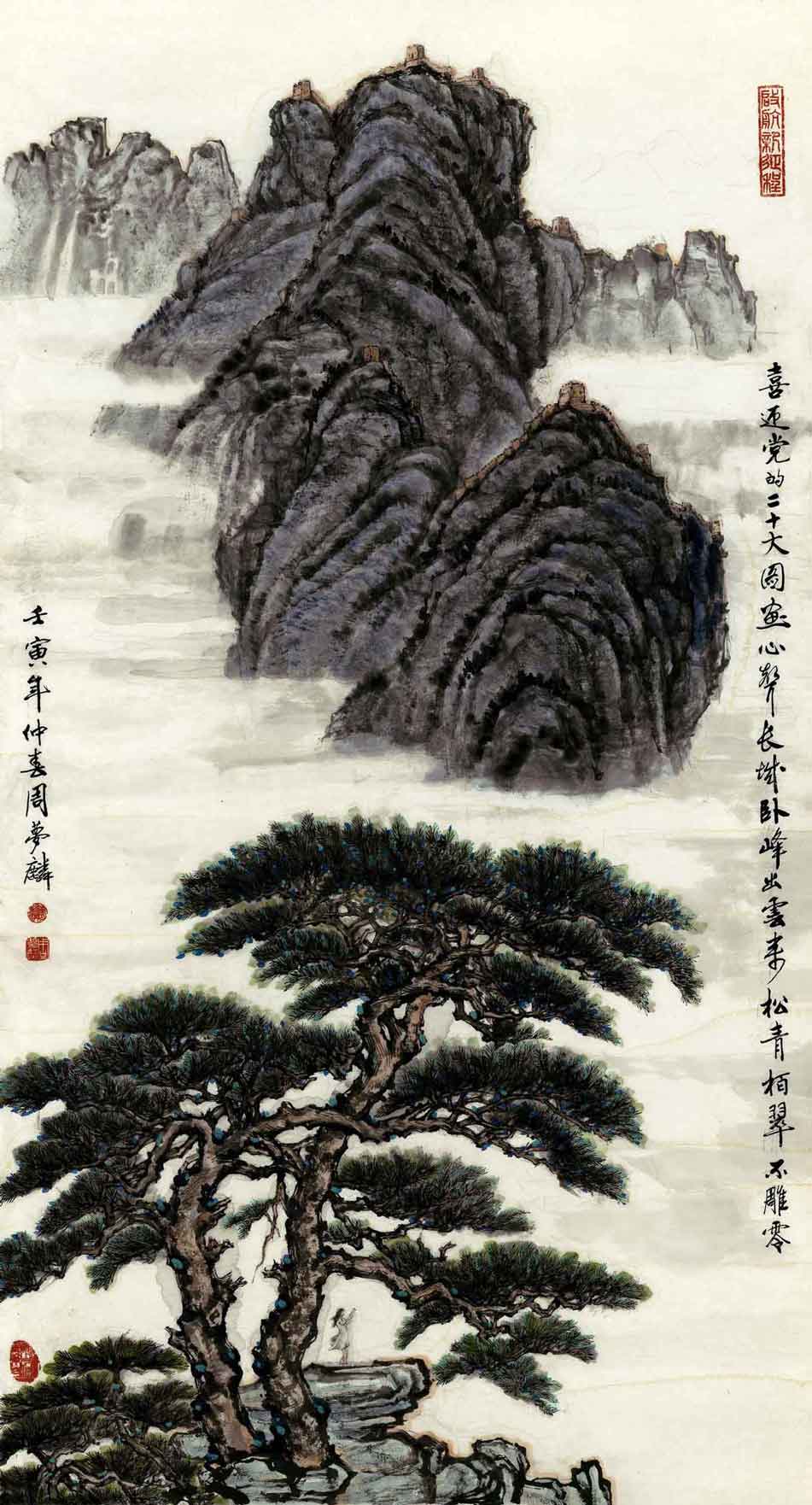 《松青柏翠不凋零》(中國畫) 周夢麟(中國貿(mào)促會)