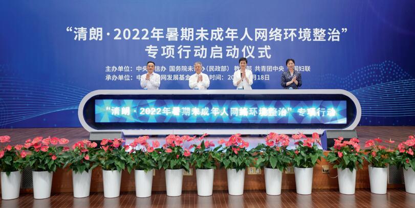 >> 中央網(wǎng)信辦深入開展“清朗”系列專項(xiàng)行動(dòng),解決人民群眾反映強(qiáng)烈的網(wǎng)絡(luò)生態(tài)問題,切實(shí)維護(hù)廣大網(wǎng)民合法權(quán)益,營(yíng)造風(fēng)清氣正的網(wǎng)絡(luò)環(huán)境。圖為“清朗 · 2022年暑期未成年人網(wǎng)絡(luò)環(huán)境整治”專項(xiàng)行動(dòng)啟動(dòng)儀式現(xiàn)場(chǎng)。