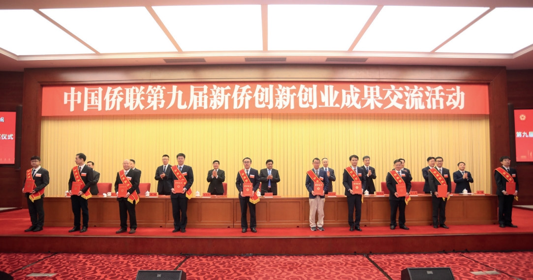 >> 2022年9月21日,在中國僑聯第九屆新僑創新創業成果交流活動上,第九屆“僑界貢獻獎”獲獎者上臺領獎。