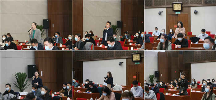 在主題分享環節,3位黨的二十大代表,生動講述參加二十大的寶貴經歷和真情實感,緊密結合部門中心任務和個人崗位職責,聚焦深刻領悟“兩個確立”的決定性意義、準確把握中國式現代化的中國特色、深刻領會習近平總書記對新時代青年有理想、敢擔當、能吃苦、肯奮斗的殷殷囑托等,談感想、說打算、話未來。中央紀委國家監委機關第十三審查調查室傅玉慧結合自己作為監票人全流程深度參與黨的二十大選舉工作的經歷,談到青年黨員干部要提高尊崇黨章、踐行黨章的主動性,在黨內嚴肅政治生活中接受考驗鍛煉,要結合本職工作認真學習領會、貫徹落實黨的二十大精神,以“時時放心不下”的工作態度和“我將無我”的斗爭精神,把握時代機遇強化歷史擔當,堅持全面從嚴治黨永遠在路上,全面打贏反腐敗斗爭攻堅戰持久戰。國家發展改革委農村經濟司鄭慧濤談到,黨的二十大報告通篇貫穿人民至上思想,是新征程上全面建設社會主義現代化國家的根本遵循。當代青年生逢其時,要樹立遠大理想,堅持實干精神,保持敬畏之心,把群眾的利益放在心上,恪盡職守、勤懇工作,努力讓人民群眾獲得感、幸福感、安全感更加充實、更有保障、更可持續。商務部研究院林夢從普通黨員、智庫研究人員、商務工作、青年發展等四個視角分享了參加大會和學習二十大報告的心得體會,倡導新征程上的青年,要在深刻了解過去的“難”、深刻認識現在的“好”、深刻預判未來的“險”的基礎上,更加增強生逢盛世的使命感和責任感,自覺主動地肩負起青年一代的光榮職責。參會青年聚精會神聆聽他們的發言,結合實際深入思考,并就推進馬克思主義中國化時代化、構建新發展格局、維護產業鏈供應鏈安全等方面問題踴躍發言、互動交流。