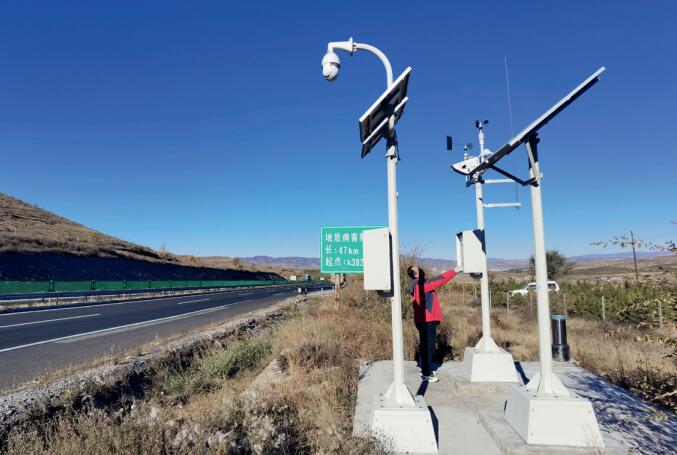 當前,全國氣象部門正認真落實《“十四五”交通氣象保障規劃》,全面提升現代綜合交通運輸氣象保障服務能力,服務交通強國建設。圖為內蒙古自治區卓資縣氣象局業務人員對轄區內高速公路交通氣象站進行巡檢。