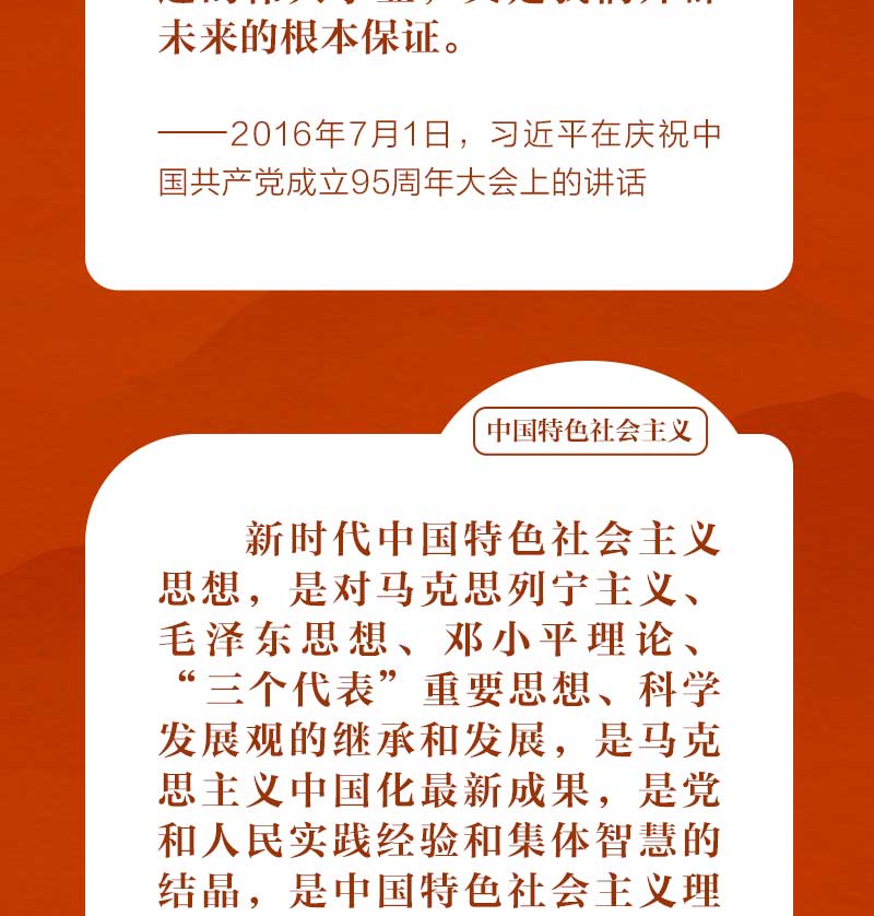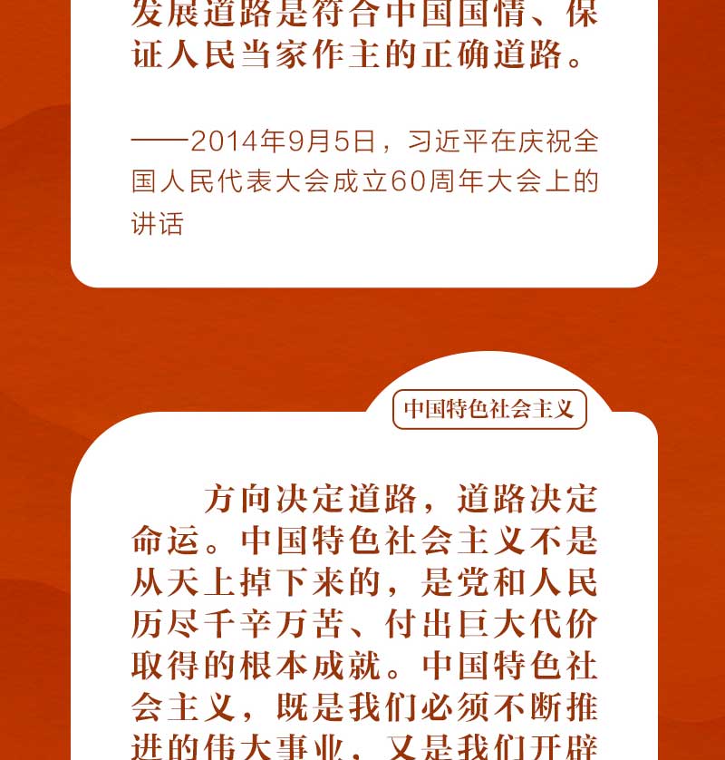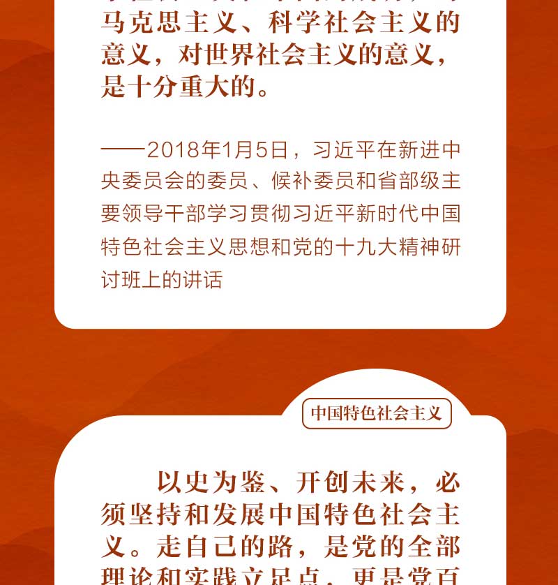 歷史和現(xiàn)實都告訴我們,只有社會主義才能救中國,只有中國特色社會主義才能發(fā)展中國,只有堅持和發(fā)展中國特色社會主義才能實現(xiàn)中華民族偉大復興。這是歷史的結(jié)論,也是人民的選擇。我們一起從習近平總書記的重要論述中體會其深刻含義。