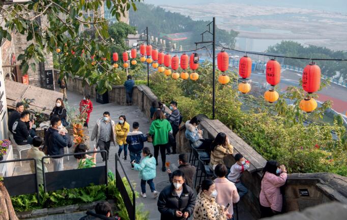 2022年12月,游客在位于重慶解放碑商圈的著名景點山城巷游覽。