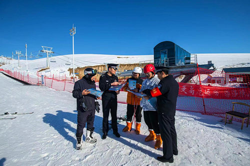 “為群眾排憂解難,就是我們最重要的工作!”警務(wù)區(qū)聯(lián)合實戰(zhàn)黨小組設(shè)立了“黨員先鋒崗”,在旅游咨詢、查找失物、緊急救助等方面為游客和山區(qū)牧民提供最佳服務(wù),當(dāng)好平安景區(qū)的堅實“守護者”。1月5日,當(dāng)?shù)赝唤荡笱糠致范蔚缆方煌ㄊ茏瑁?輛私家車被困風(fēng)雪中。接到群眾求助后,警務(wù)區(qū)黨小組的數(shù)十名成員立即組成應(yīng)急救援小分隊開展救援。經(jīng)過2個多小時的救援,所有被困人員和車輛全部脫險,并由民警護送至安全路段。