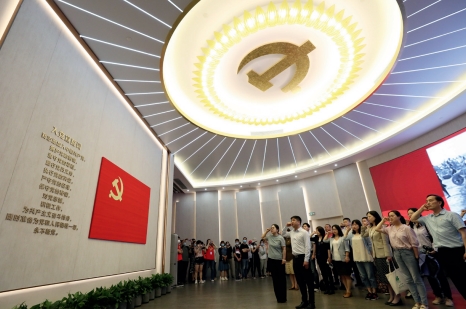 >> 黨員在上海中共一大紀(jì)念館里重溫入黨誓詞。