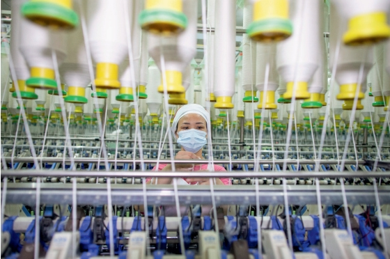 >> 2022年7月15日,江蘇省海安市南莫鎮(zhèn)一家紡織公司生產(chǎn)車間內(nèi),工人在生產(chǎn)線上工作。