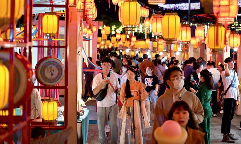 今年以來,海南省海口市著力打造各類“市集經濟”,加速消費市場復蘇。圖為游客在海口日月廣場逛古風市集(2月19日攝)。