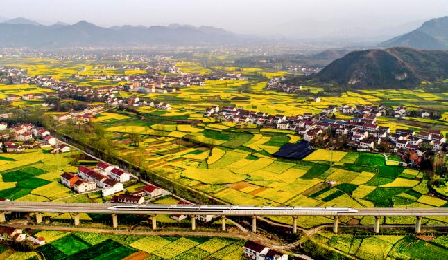 陜西省漢中市洋縣洋州街道何家村的油菜花海。漢中是南水北調中線工程重要水源地,近年來,當地因地制宜發展生態農業和鄉村旅游,通過農文旅融合發展“賞花經濟”,助力鄉村振興。