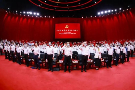 總臺各部門各單位主要負責同志和負責黨建工作的副書記,受表彰的總臺“四好”優秀黨員、“四強”黨支部、“年度黨建品牌”代表,新發展黨員代表在現場參加活動。總臺四址辦公區黨員、干部通過閉路電視收看活動直播,國內各地方總站黨員、干部通過視頻會議系統收看活動實況,并與活動現場同時重溫入黨誓詞。