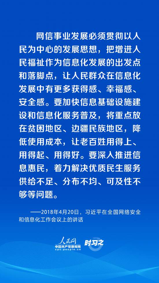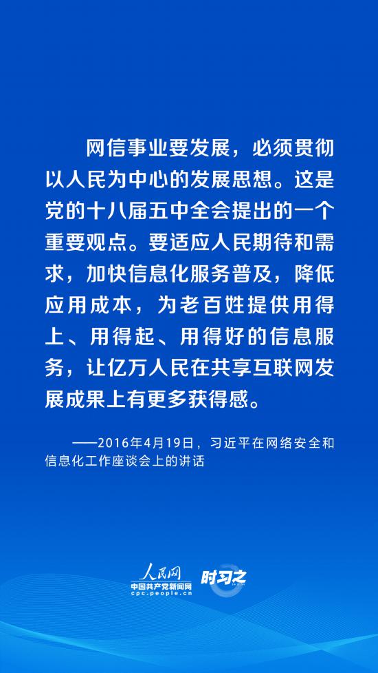 “網信事業要發展,必須貫徹以人民為中心的發展思想。”黨的十八大以來,習近平總書記高度重視網絡信息化建設,始終堅持把增進人民福祉作為信息化發展的出發點和落腳點,讓人民群眾在信息化發展中有更多獲得感、幸福感、安全感。