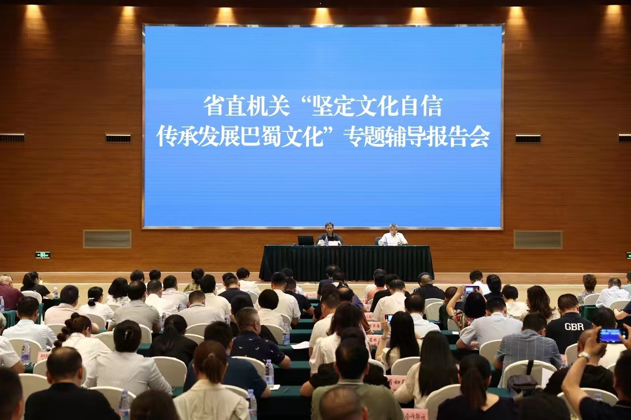 四川省直機關“堅定文化自信、傳承發展巴蜀文化”專題輔導報告會現場。