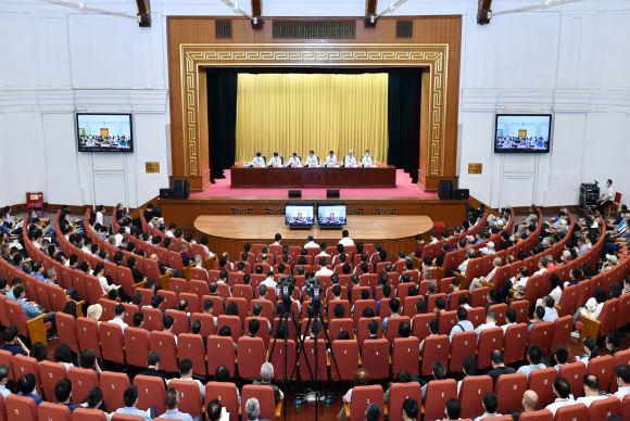 >> 6月6日,作者以“學深悟透黨的創(chuàng)新理論,忠實履行黨中央喉舌耳目智庫職責”為題,為全社黨員干部講授主題教育專題黨課。