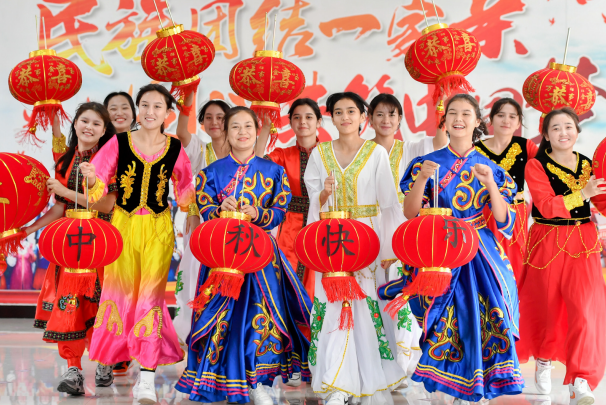 >> 浙江省湖州市長興縣職業技術教育中心民族之家,各民族學生歡聚一堂,共慶中秋佳節。
