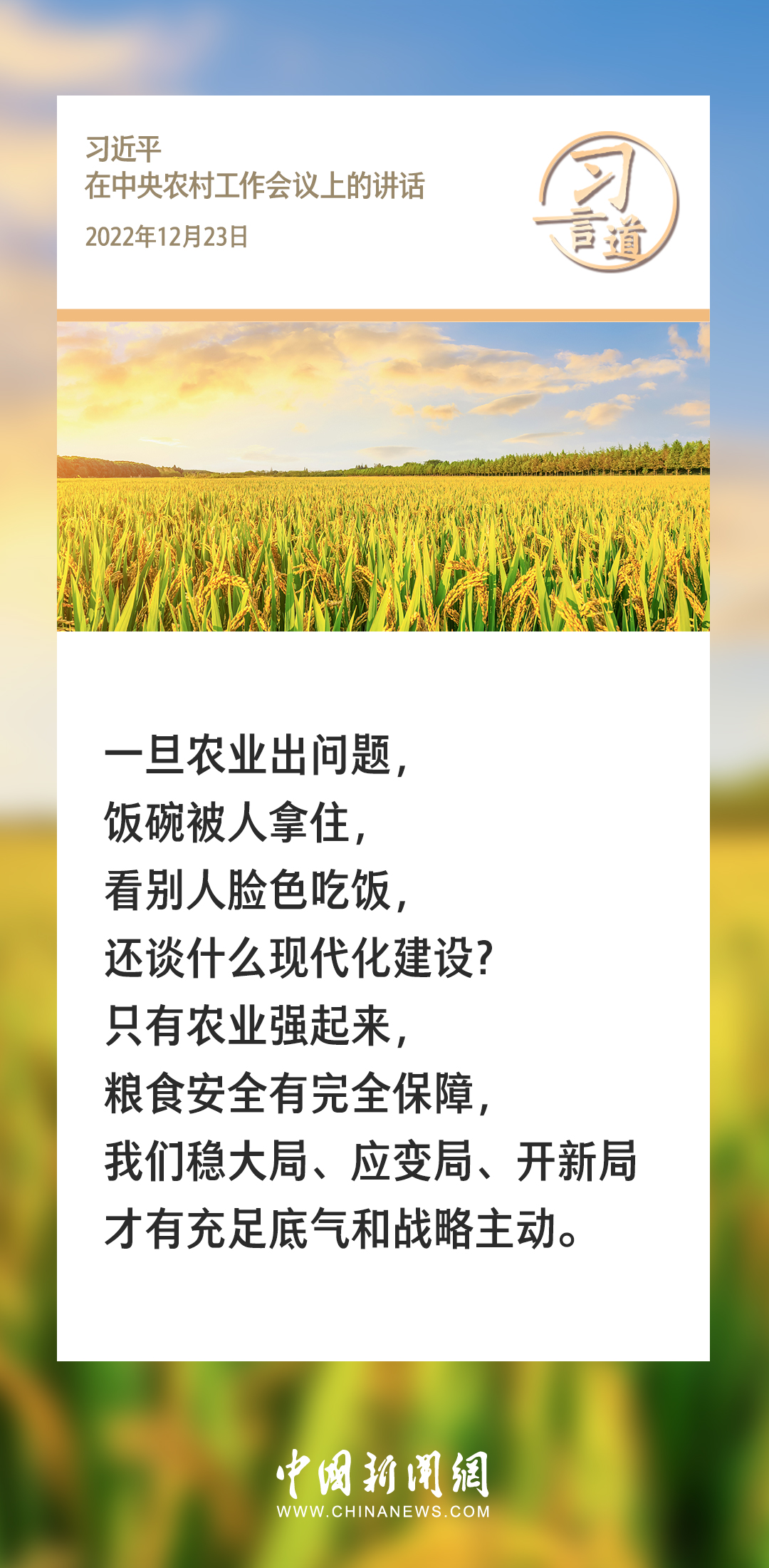 農為邦本,本固邦寧。習近平總書記多次在不同場合就“三農”工作發表重要講話、作出重要部署,始終堅持把解決好“三農”問題作為全黨工作的重中之重。