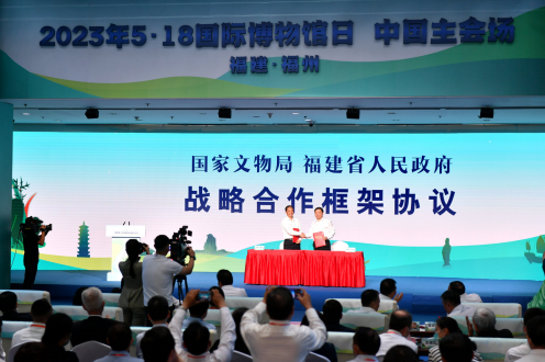 >> 2023年“5·18國際博物館日”中國主會場活動在福州舉行。圖為國家文物局與福建省人民政府簽署加強文物保護利用戰略合作框架協議。