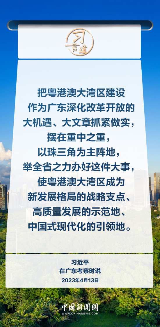 建設粵港澳大灣區,是習近平總書記親自謀劃、親自部署、親自推動的重大國家戰略。習近平在多個重大會議、重要場合對粵港澳大灣區建設作出重要指示、提出明確要求。
